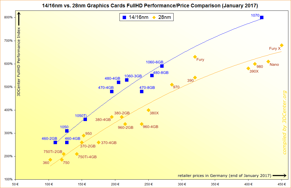 14/16nm vs. 28nm Graphics Cards FullHD Performance/Price Comparison (January 2017)