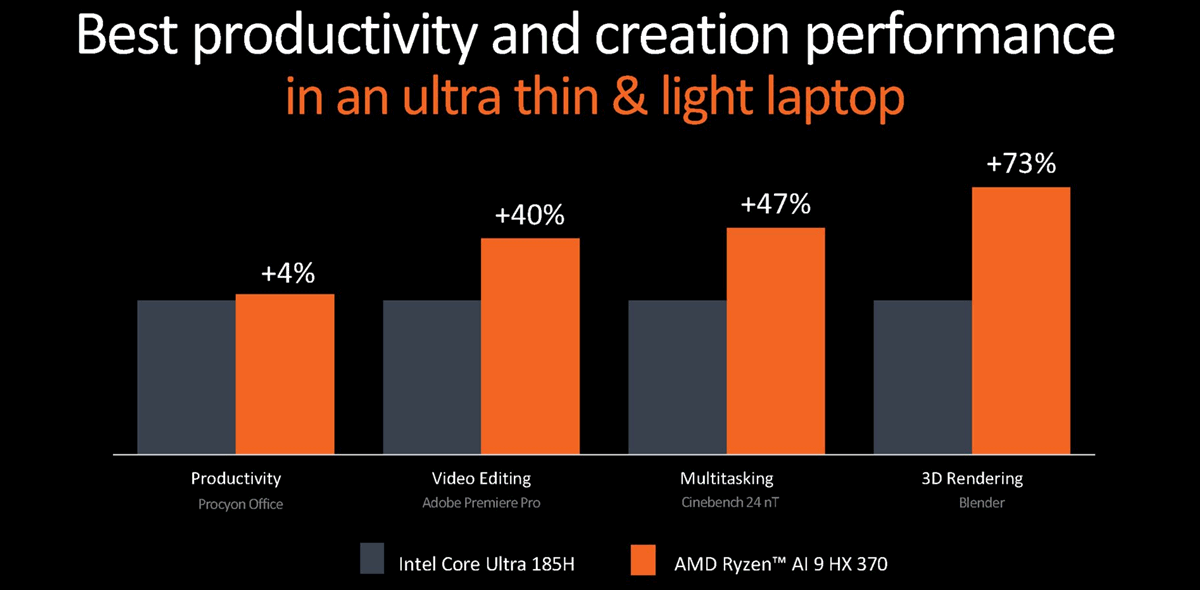 AMD-Benchmarks Ryzen AI 9 HX 370 vs Core Ultra 185H (Anwendungen)