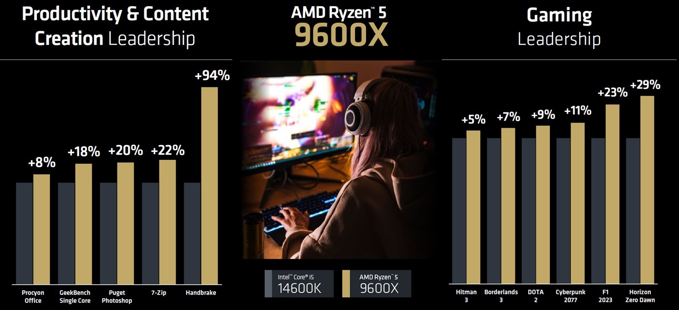AMD-eigene Benchmarks Ryzen 5 9600X vs Core i5-14600K