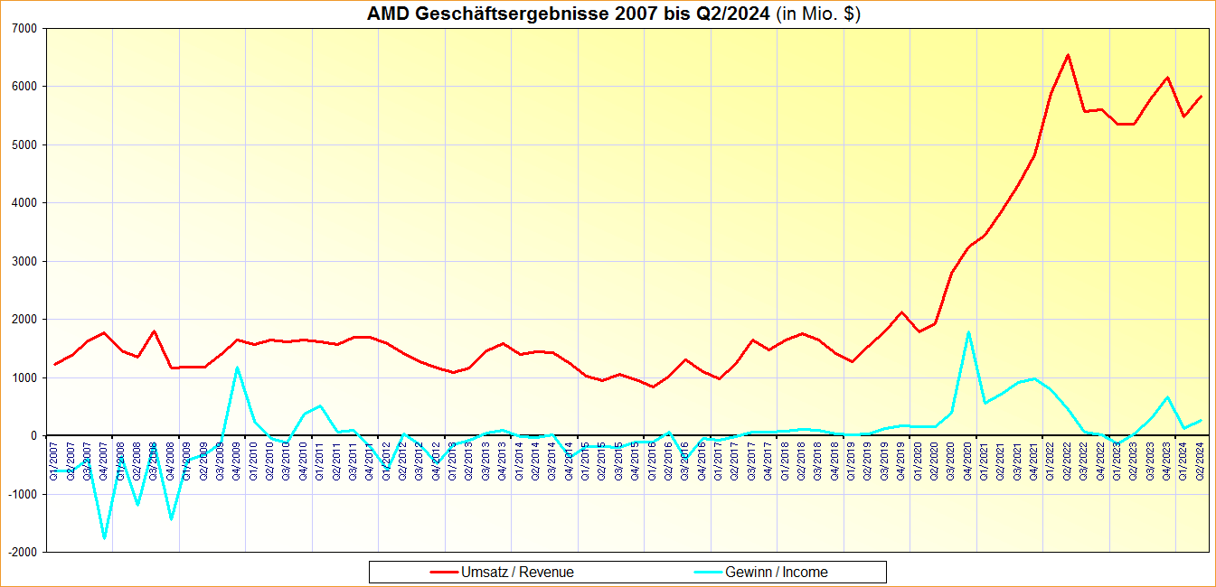 AMD Geschäftsergebnisse 2007 bis Q2/2024