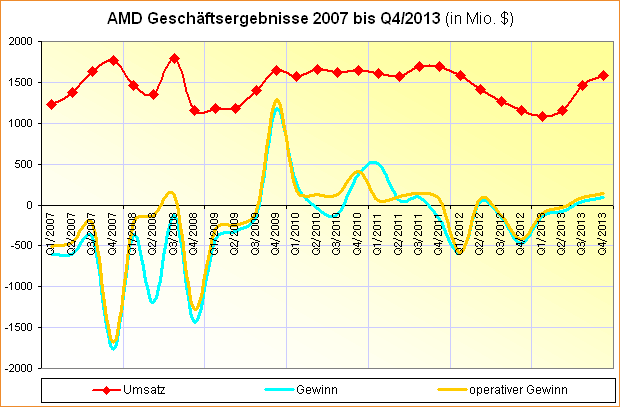 AMD Geschäftsergebnisse 2007 bis Q4/2013