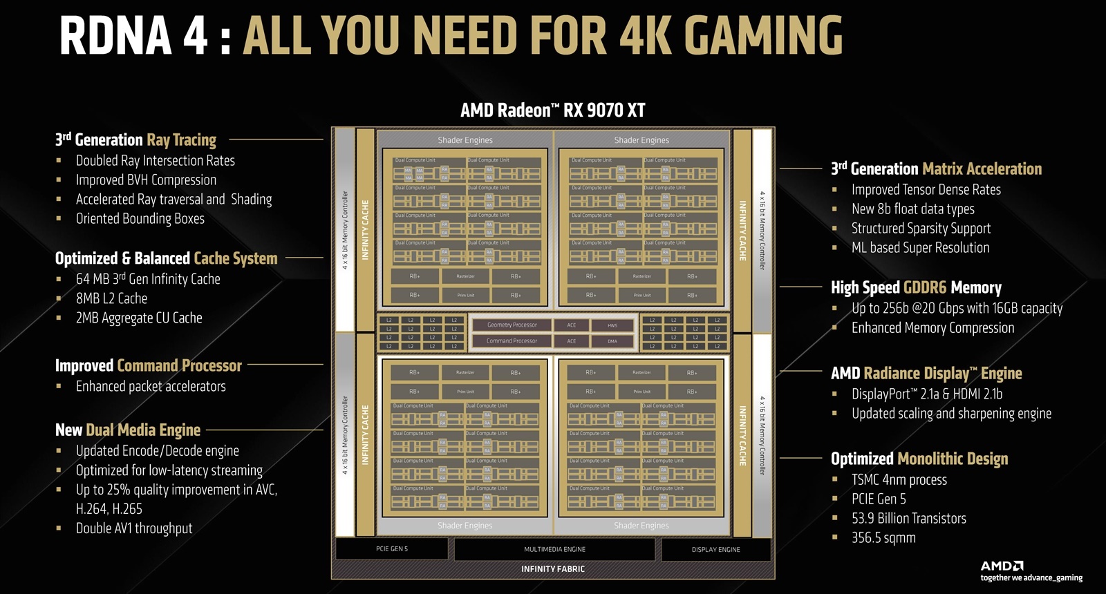 AMD "Navi 48 (Radeon RX 9070 XT) Block-Diagramm
