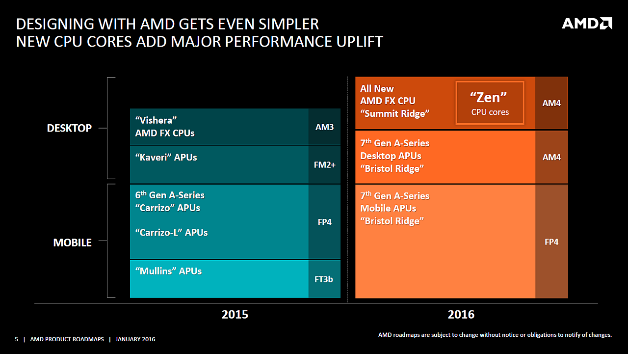 AMD "Product Roadmap" Januar 2016 (Slide 5: Desktop- & Mobile-Prozessoren)