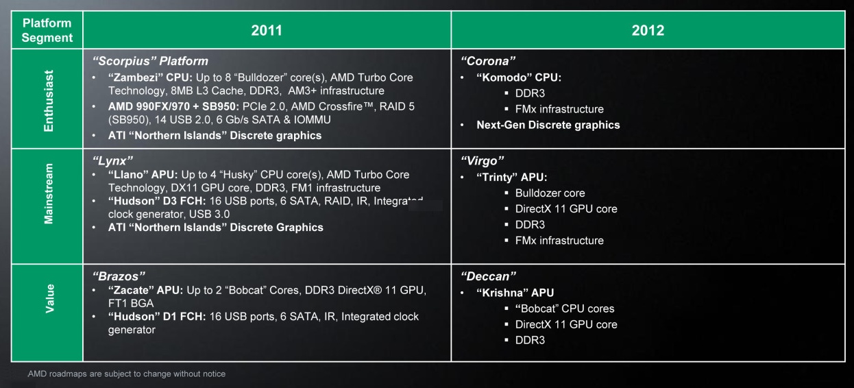 AMD Prozessoren-Roadmap 2011/2012, Teil 2
