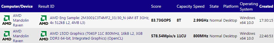 AMD "Raven Ridge" Testsample @ SiSoft Benchmarkdatenbank