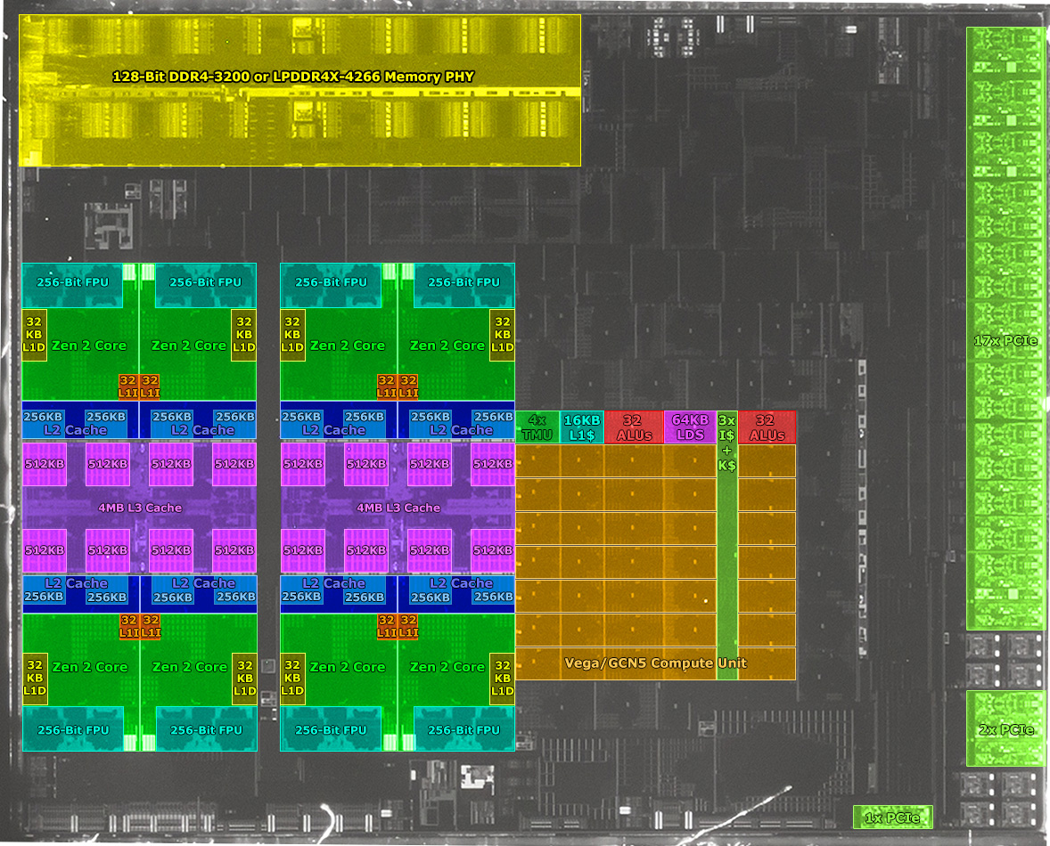 AMD "Renoir" Die-Shot mit markierten Einheiten
