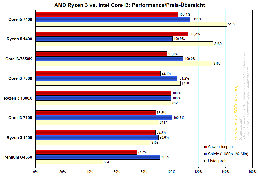 AMD Ryzen 3 vs. Intel Core i3: Performance/Preis-Übersicht