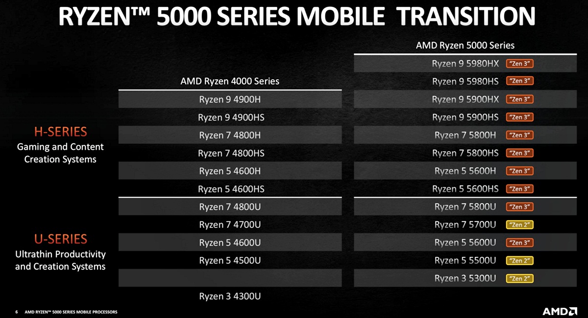 AMD Ryzen 5000 U/H Prozessoren-Serie