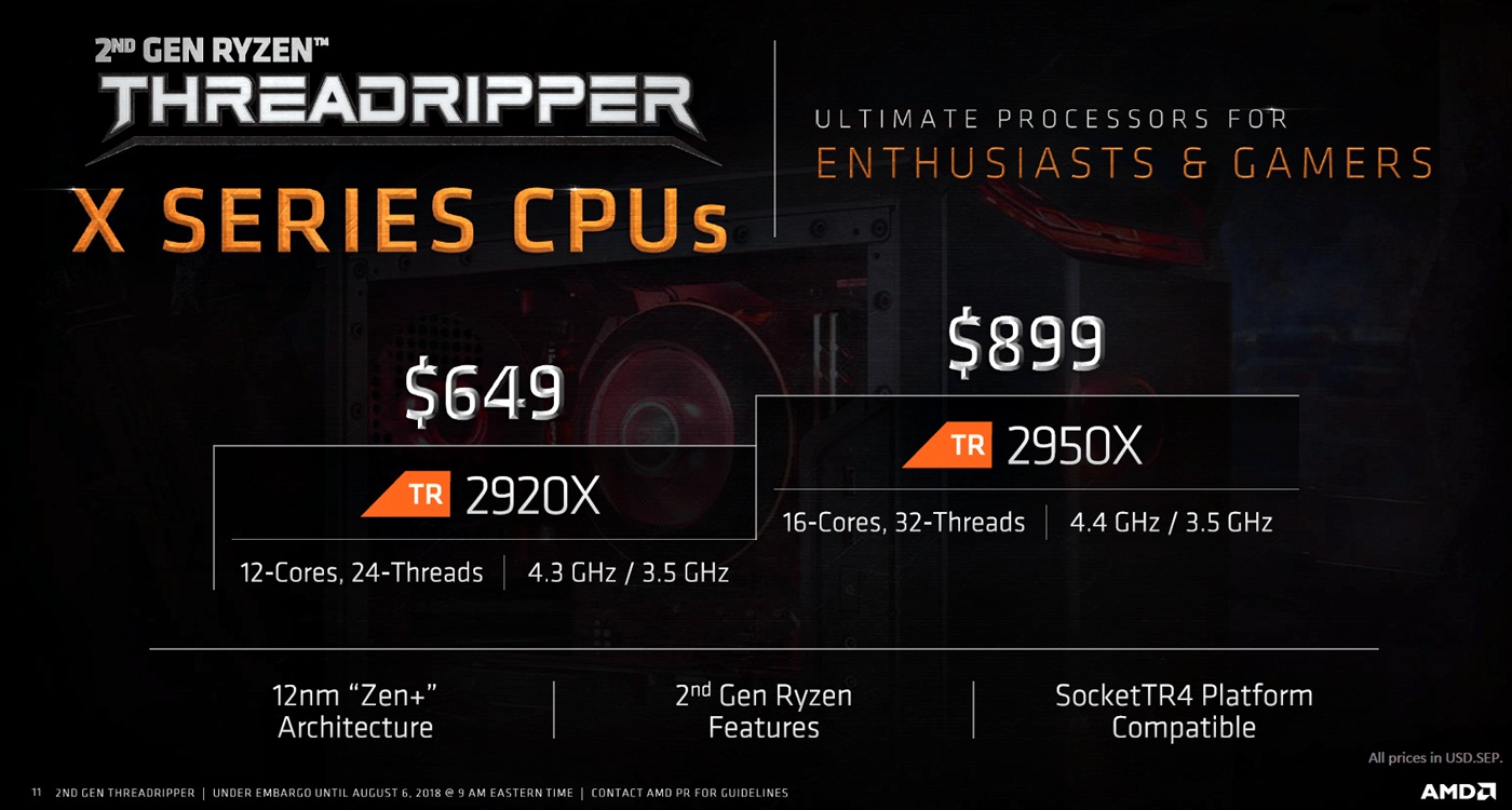 AMD Ryzen Threadripper 2920X & 2950X Spezifikationen