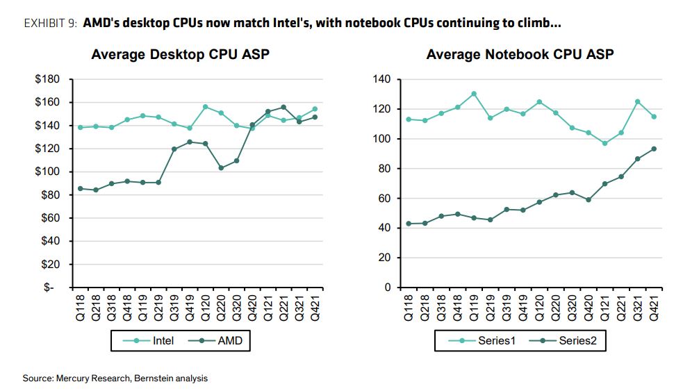 AMD vs Intel: Durchschnittliche CPU-Verkaufspreise Desktop & Notebook