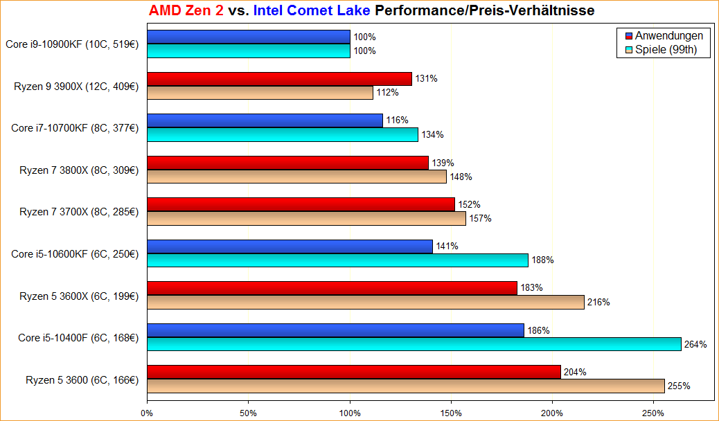 AMD Zen 2 vs. Intel Comet Lake Performance/Preis-Verhältnisse