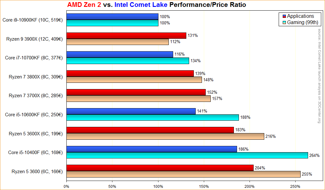 AMD Zen 2 vs. Intel Comet Lake Performance/Price Ratio
