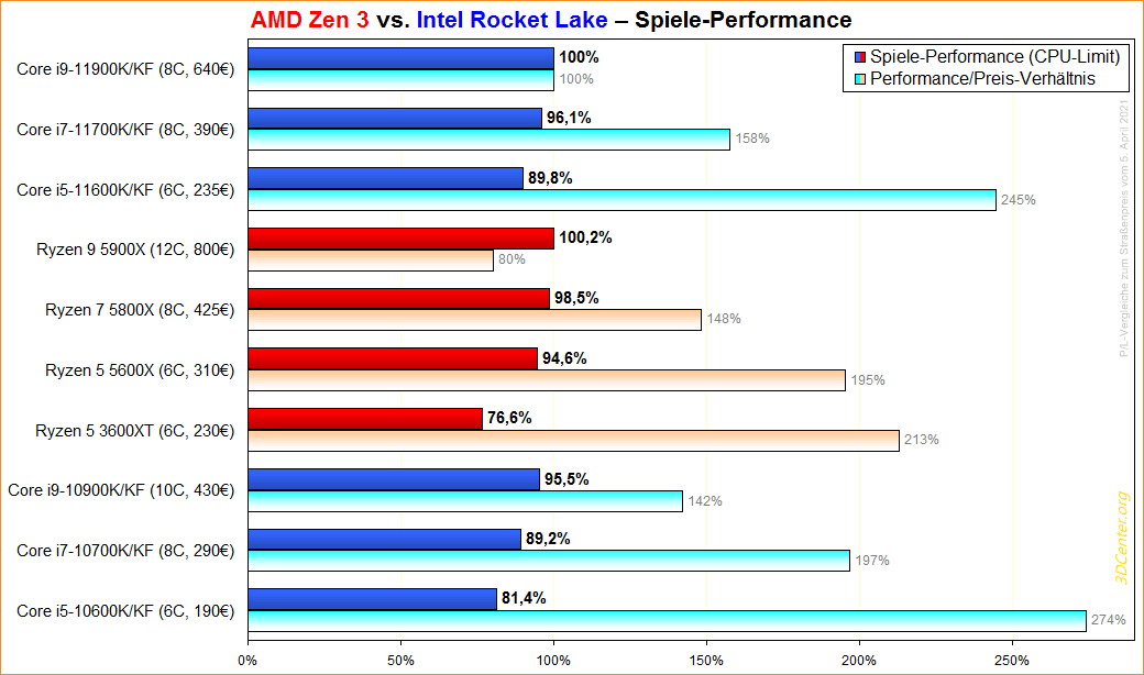 AMD Zen 3 vs. Intel Rocket Lake Spiele-Performance