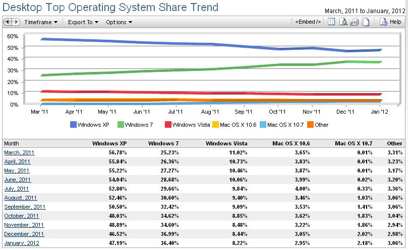 Betriebssystem-Verbreitung März 2011 bis Februar 2012 @ Netmarketshare