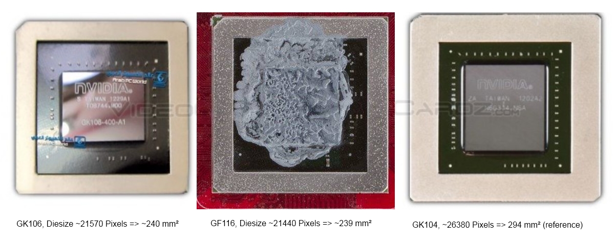 Chip-Flächen-Vergleich nVidia GK106 vs. GF116 vs. GK104