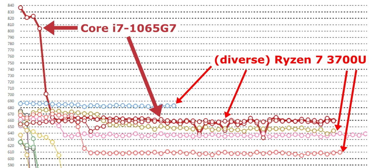 Cinebench-Vergleich Intel Core i7-1065G7 vs. AMD Ryzen 7 3700U