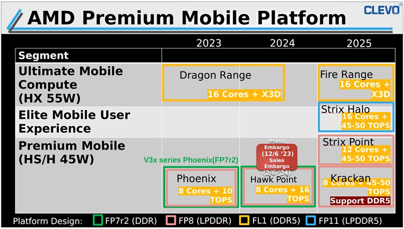 Clevo AMD Mobile-Prozessoren Roadmap 2023-2026