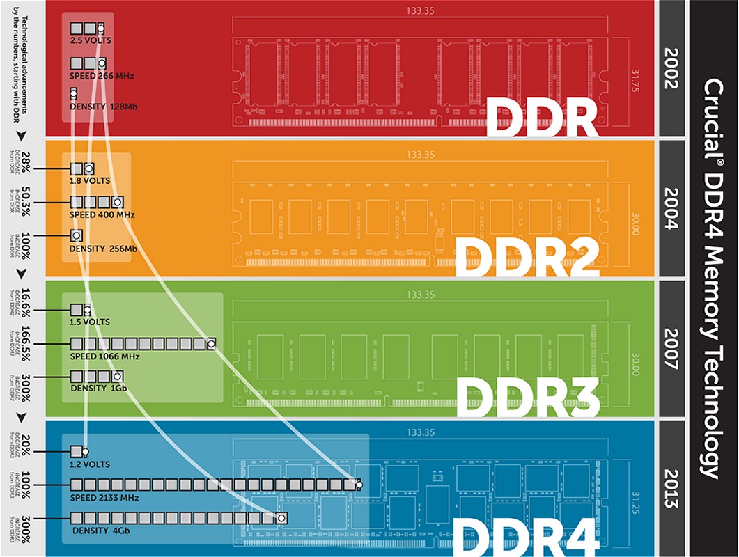 Crucial DDR, DDR2, DDR3 & DDR4 Vergleich