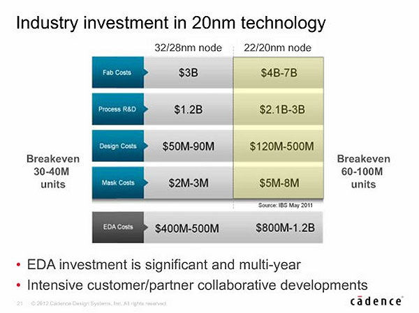 Entwicklungs- und Produktionsvorbereitungskosten der 32nm/28nm-Fertigung gegenüber der 22nm/20nm-Fertigung