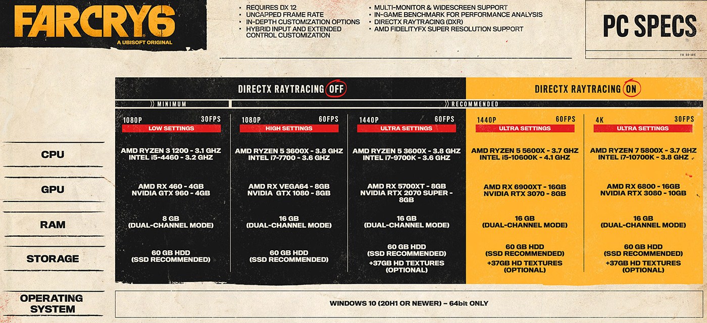 Far Cry 6 offizielle PC-Systemanforderungen