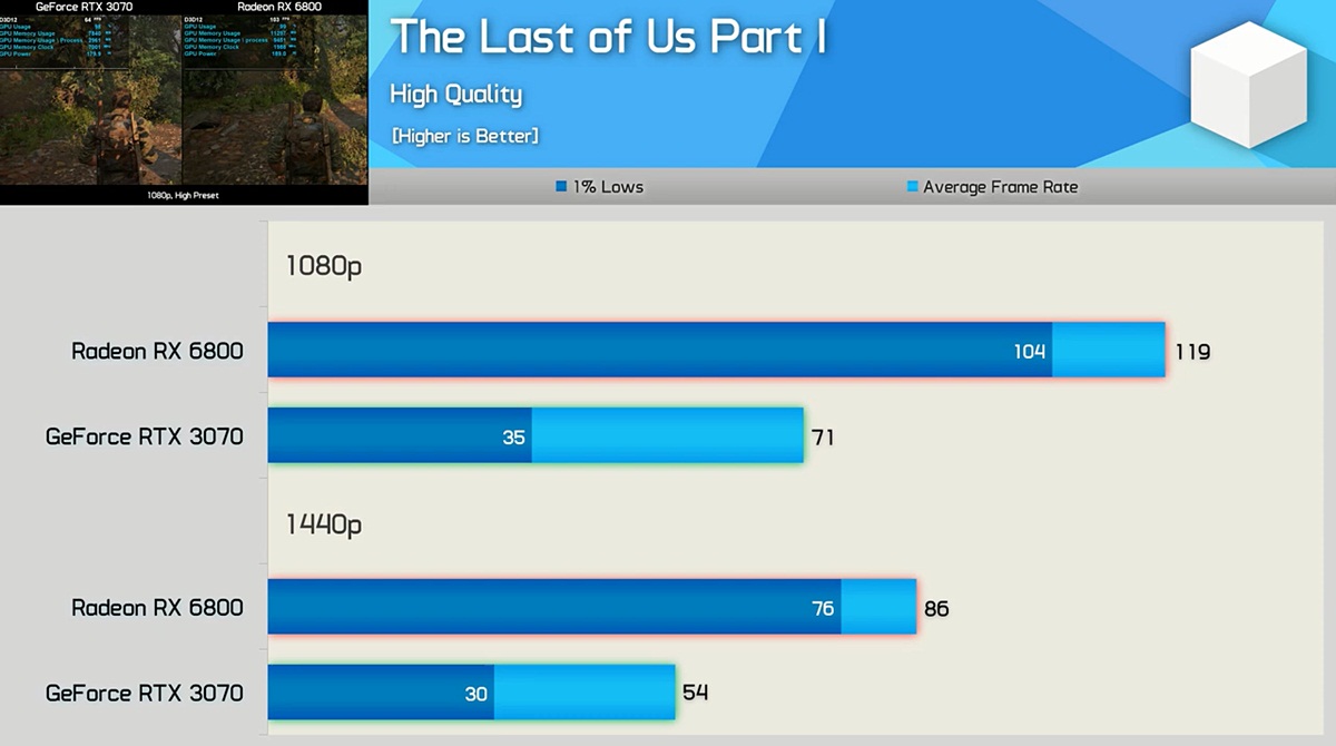 GeForce RTX 3070 vs Radeon RX 6800 @ The Last of Us, Part 1