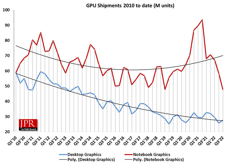 Grafikchip-Auslieferungen (inkl. iGPU) von 2010-2022 (by Jon Peddie Research)