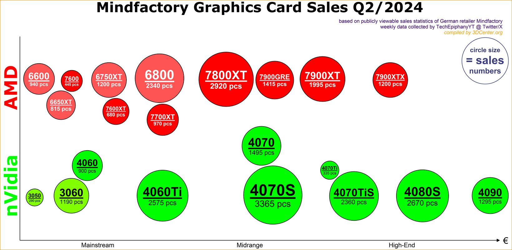 Grafikkarten-Absatz nach Modellen Mindfactory Q2/2024