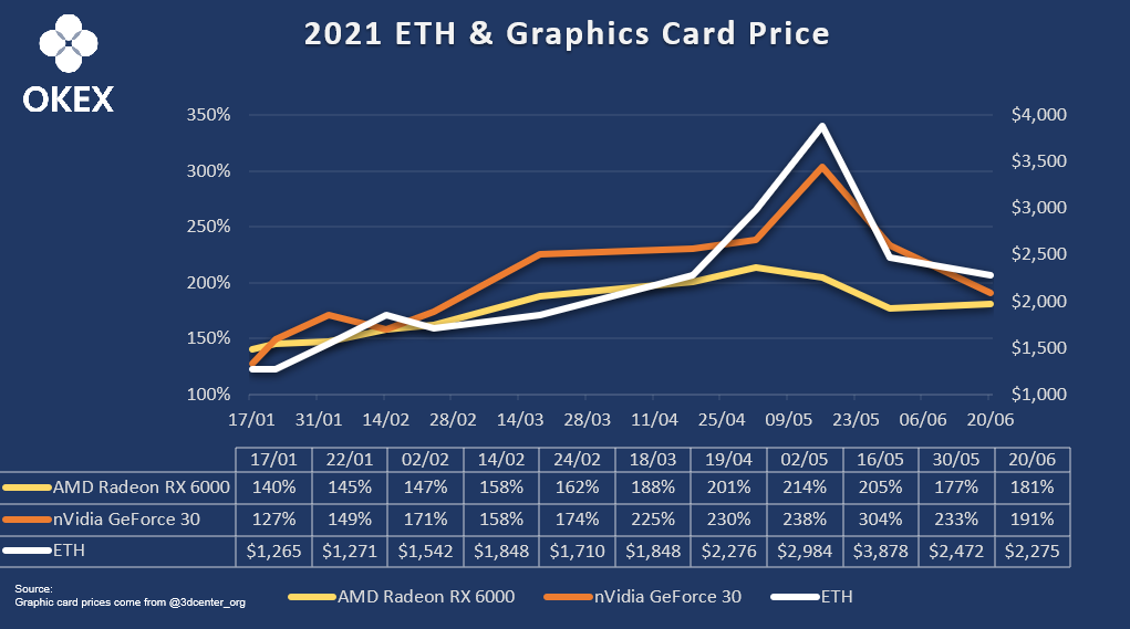 Grafikkarten-Straßenpreise in Relation zum Ethereum-Kurs