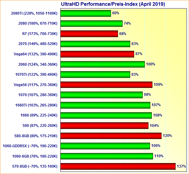 Grafikkarten UltraHD Performance/Preis-Index April 2019