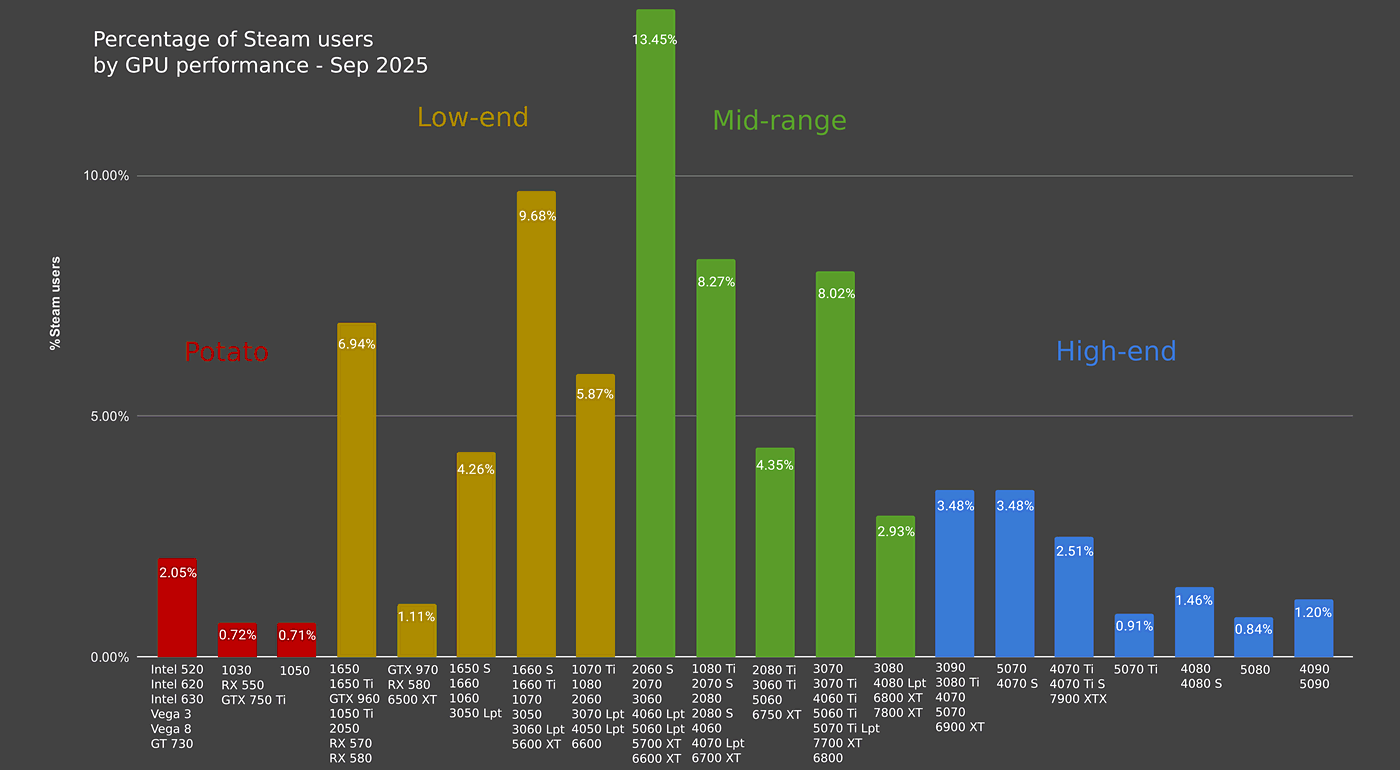 Grafikkarten-Verteilung auf Steam (Sept. 2025)