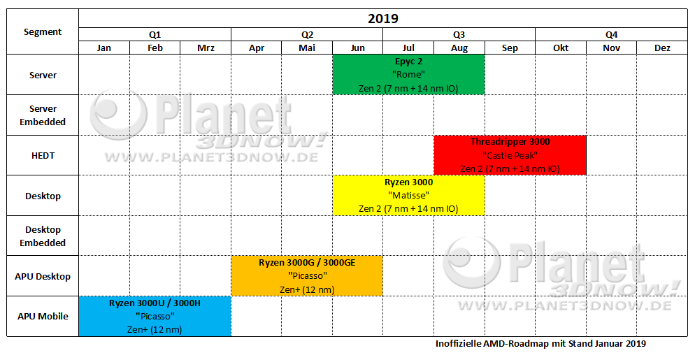 Inoffizielle AMD Prozessoren-Roadmap 2019