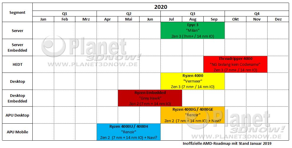 Inoffizielle AMD Prozessoren-Roadmap 2020