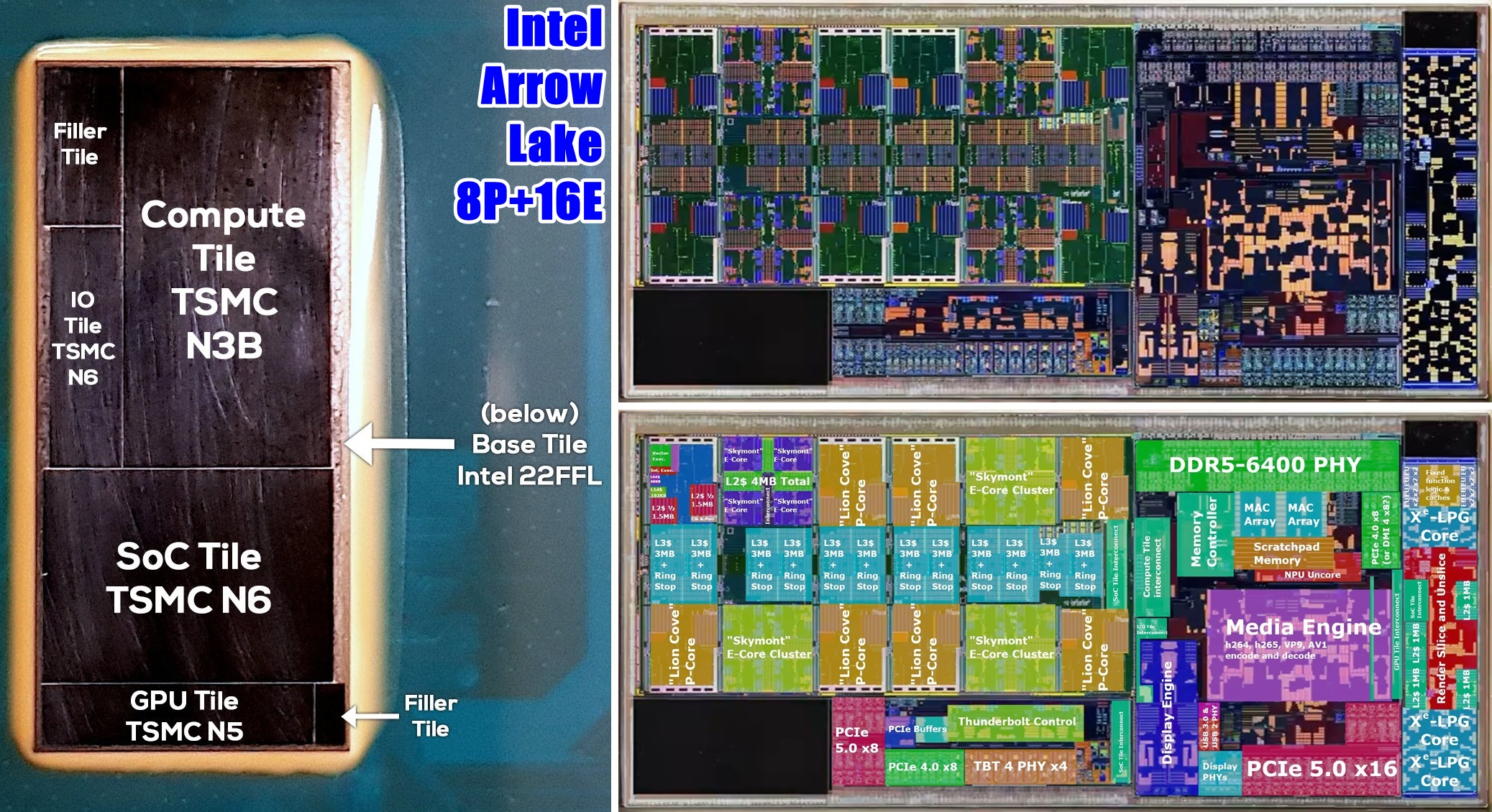 Intel "Arrow Lake" 8P+16E Tiles & Die-Shot