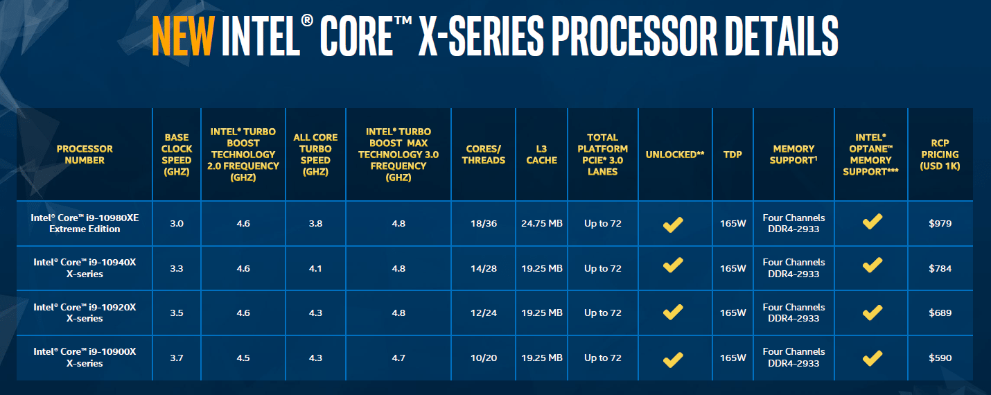 Intel Cascade Lake X offizielle Spezifikationen