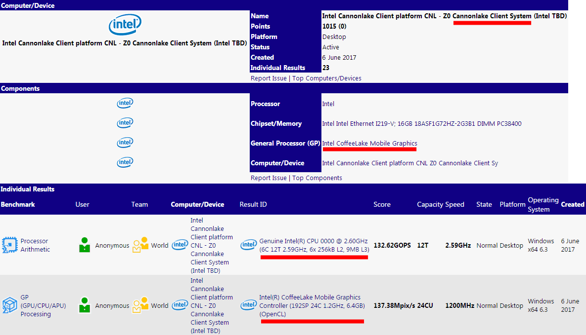 Intel "Coffe Lake" Vorserien-Sample @ SiSoft Benchmark-Datenbank