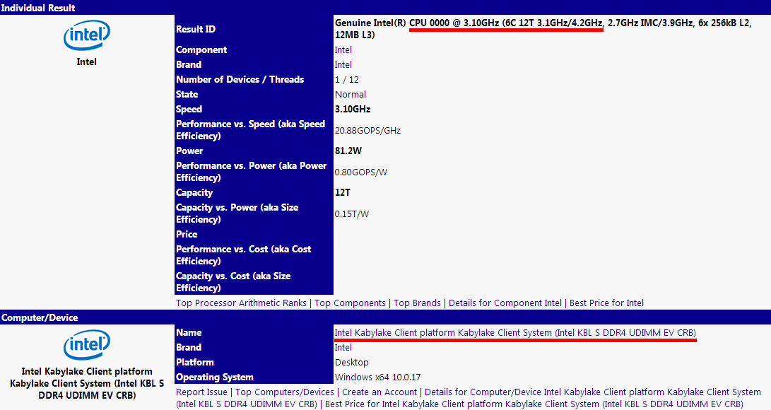 Intel "Coffee Lake" auf Kaby-Lake-Mainboard @ SiSoft-Datenbank