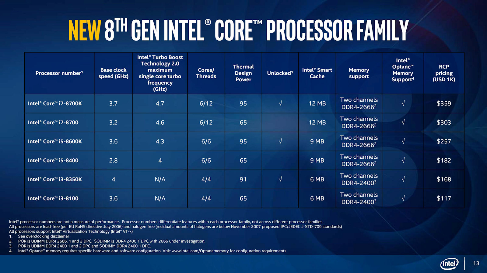 Intel "Coffee Lake" offizielle Spezifikationen