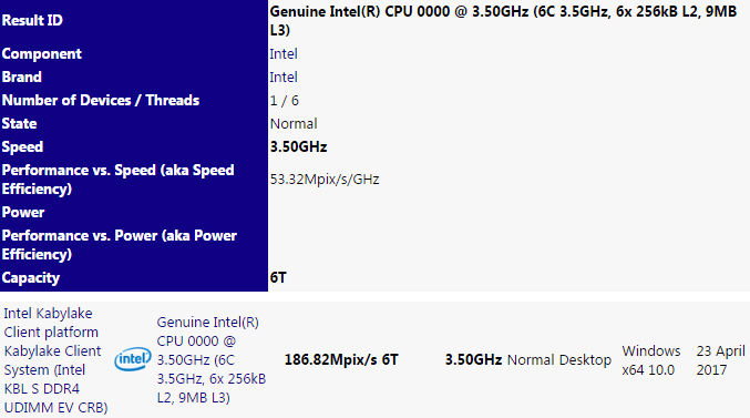 Intel "Coffee Lake" @ SiSoft Benchmark-Datenbank