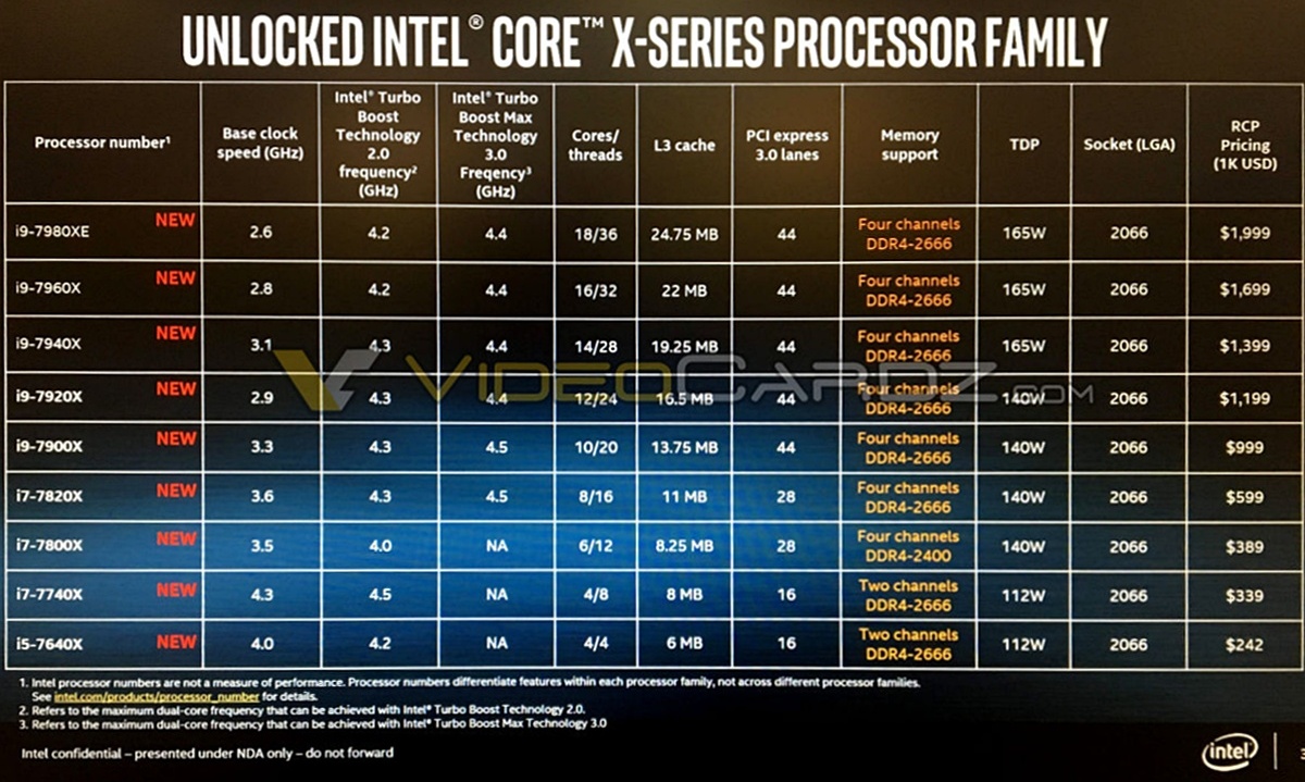 Intel Core X Spezifikationen (komplett)