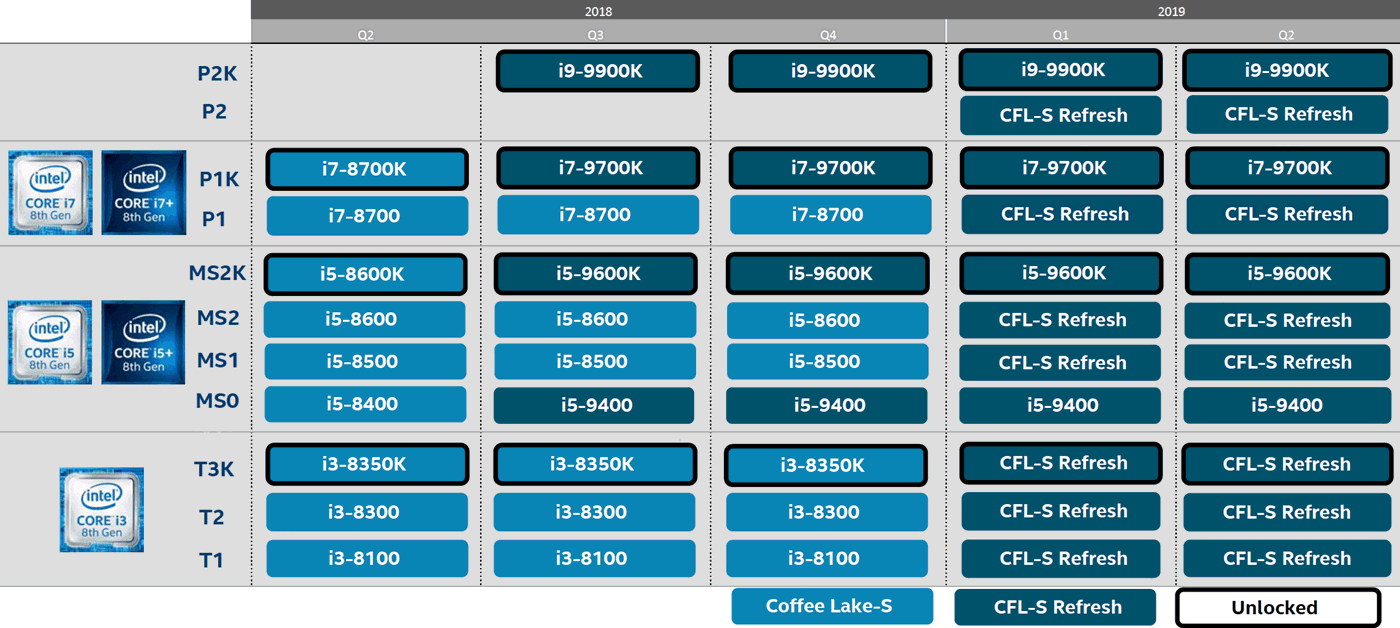 Intel Desktop-Prozessoren Roadmap 2018-2019 (Stand Jahresmitte 2018)
