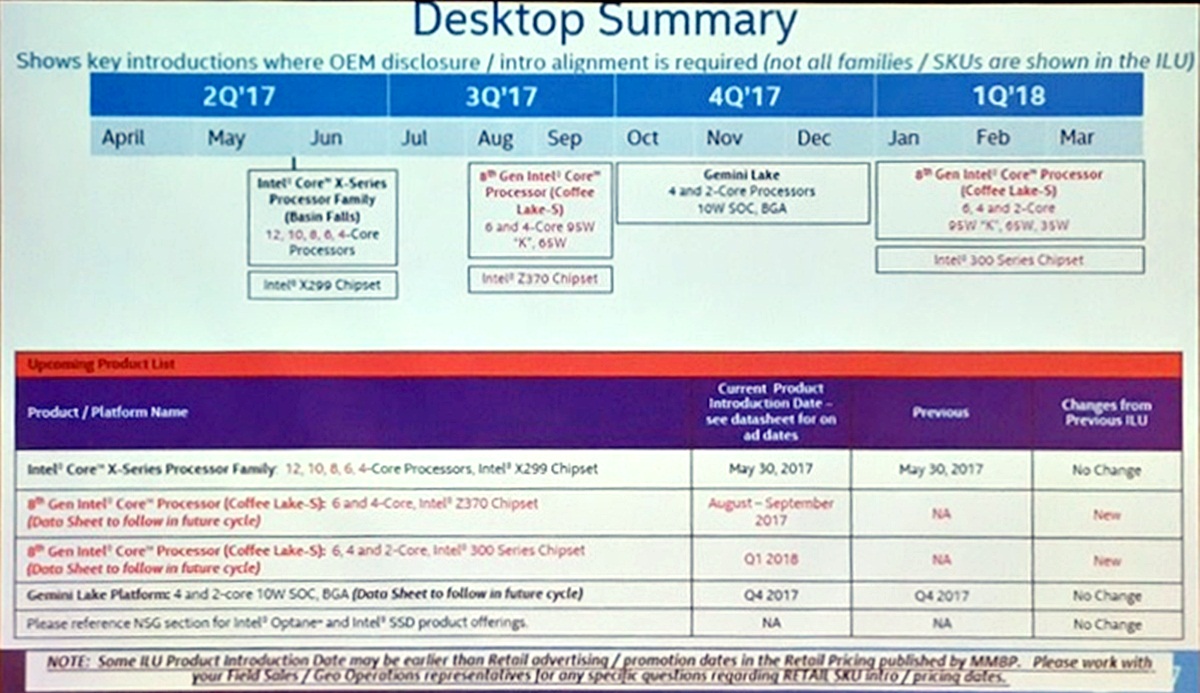 Intel Desktop-Prozessoren Roadmap Q2/2017 bis Q1/2018