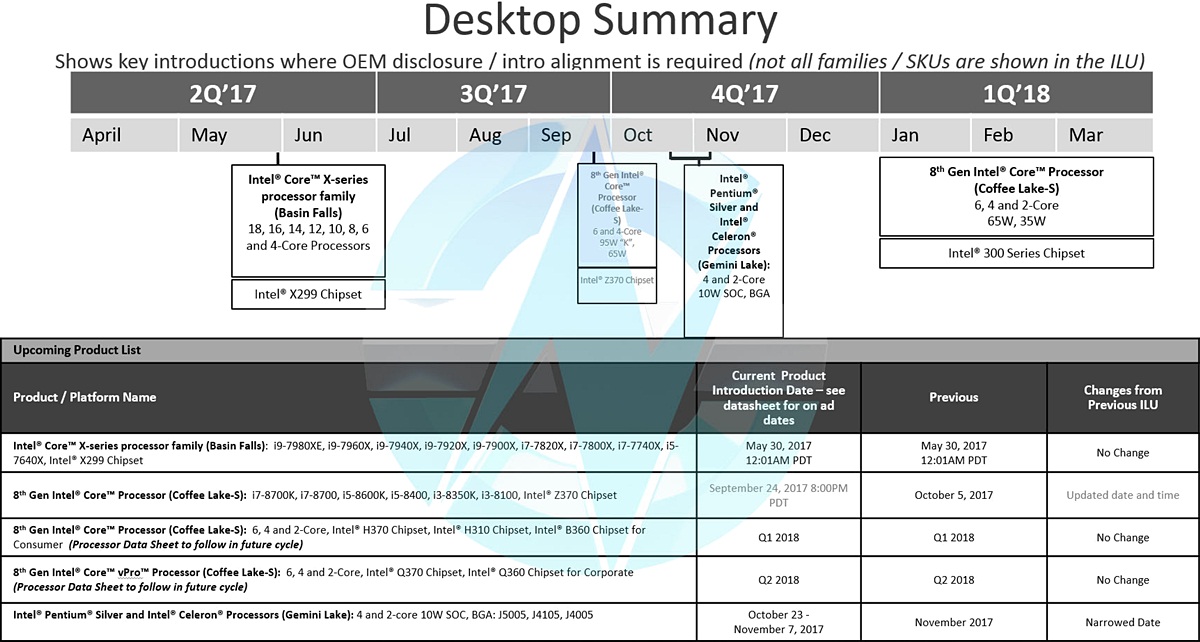Intel Desktop-Roadmap Q2/2017 bis Q1/2018