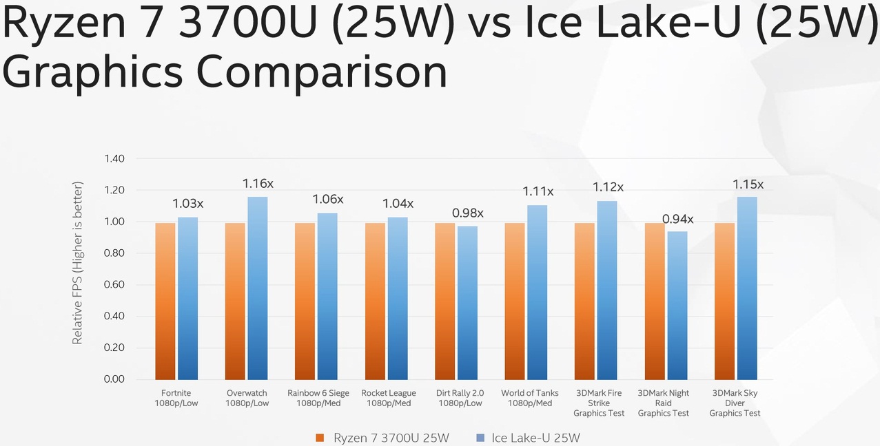 Intel Ice Lake vs. Ryzen 7 3700U Grafik-Benchmarks