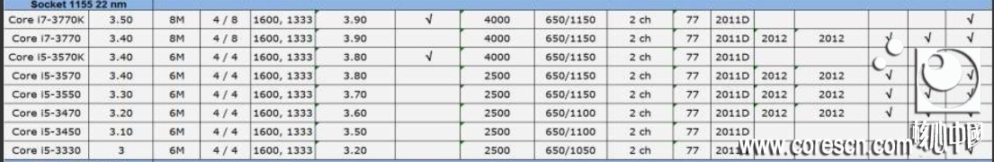 Intel Ivy Bridge: Modelle & Taktraten, Teil 1