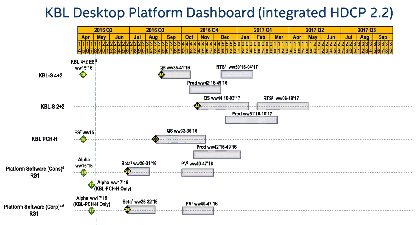 Intel Kaby Lake (Desktop) Auslieferungsroadmap