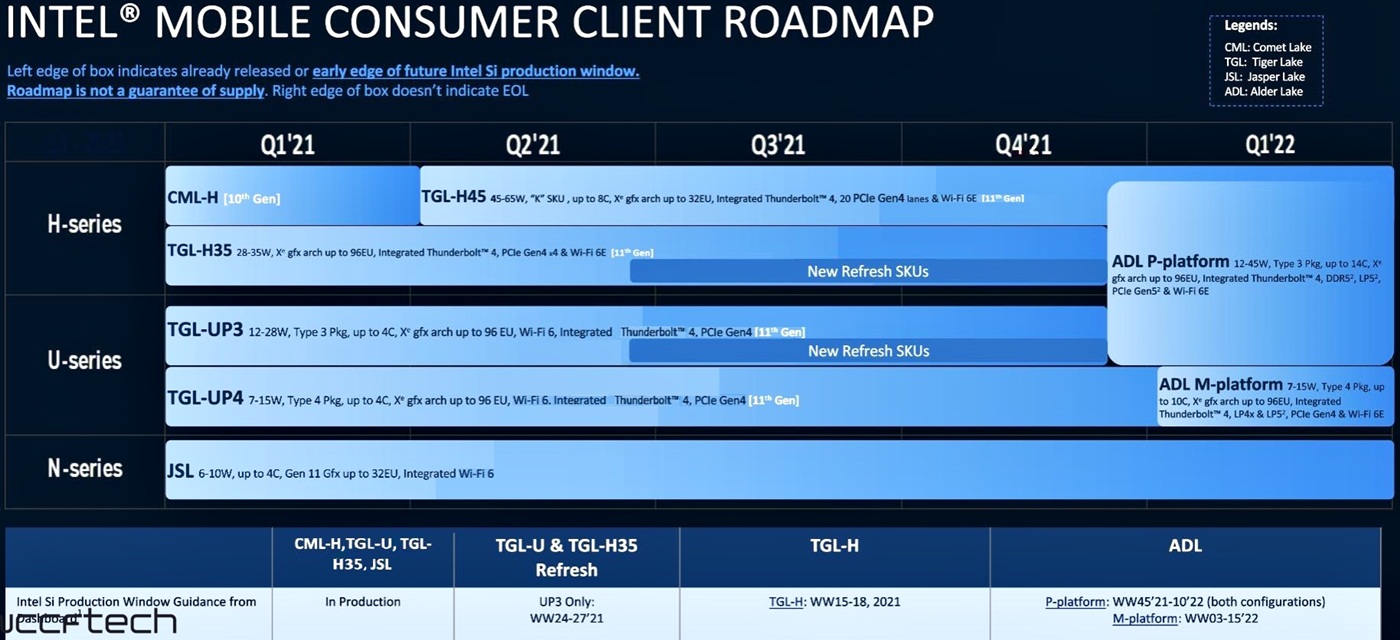Intel Mobile-Prozessoren Roadmap 2021-2022