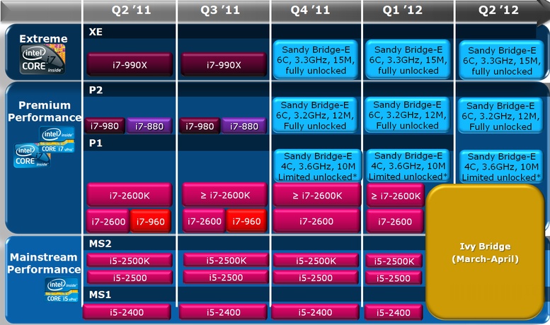 Intel Sandy Bridge & Ivy Bridge Roadmap (Mai 2011)