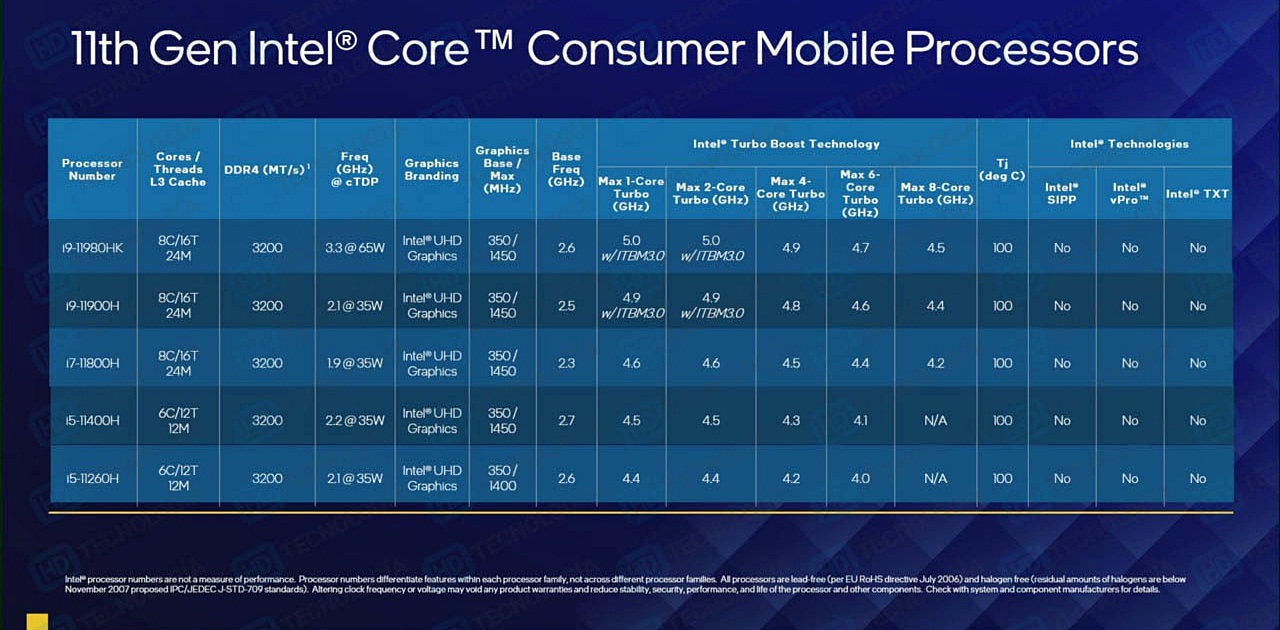 Intel Tiger Lake-H Spezifikationen