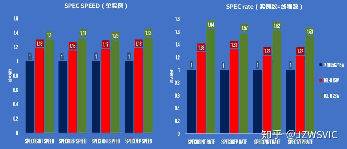 Intel Tiger Lake U SPEC-Benchmarks vs. Core i7-1065G7