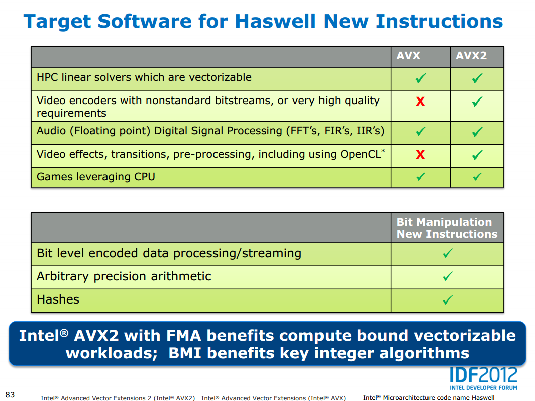 Intels AVX2-Präsentation (Slide 83)